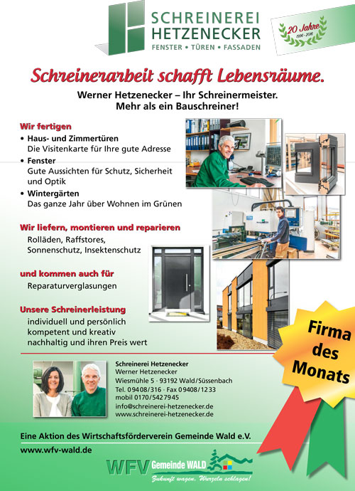 | Schreinerei Hetzenecker | Flyer | PDF herunterladen |